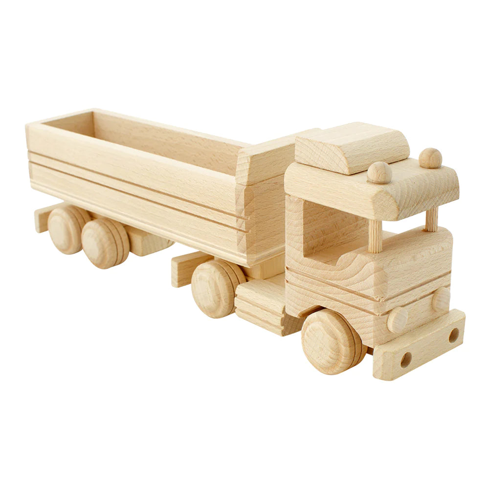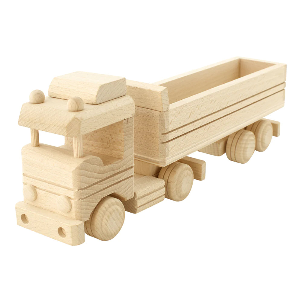 Our Indiana wooden semi trailer toy truck is another awesome addition to our growing collection of handmade wooden toy trucks. She features a decent sized tray so they can have hours of fun loading and unloading all of their other favourite toys.